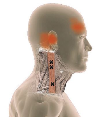 Rasti näyttää lihaksen triggerpisteen ja punainen sen aiheuttaman kipualueen.