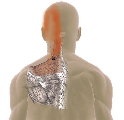 Rasti näyttää lihaksen triggerpisteen ja punainen sen aiheuttaman kipualueen.